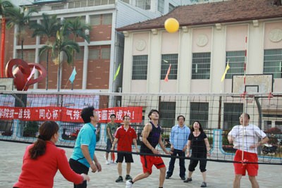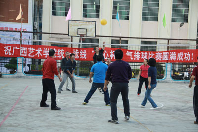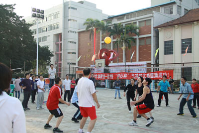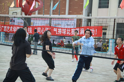 为深入贯彻胡锦涛总书记在今年年初党外人士迎春座谈会上提出的“同心”思想,认真落实好自治区党委统战部关于开展“同心•经济统战、文化统战、和谐统战”品牌建设方案的指示和要求,增进我院统一战线成员之间的沟通与交流,凝心聚力,积极推动校园和谐建设,学院党委统战部于2011年11月24日在篮球场举办了2011年学院统一战线“同心杯”气排球比赛。学院各民主党派基层组织、无党派人士代表、侨联、留学联谊会等8支队伍参加了本次比赛。