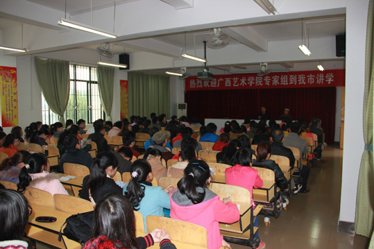 在岑溪考察学习期间,我院金北凤、陶雄军、吴海立、蒋玲等4位老师还不辞劳苦,发挥所长,为全市中小学300多名艺术教师进行了专业教学培训,以实际行动为当地艺术教育事业的发展贡献了力量。