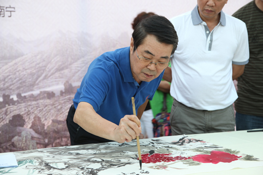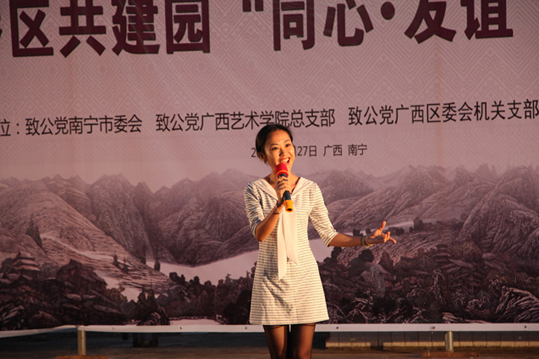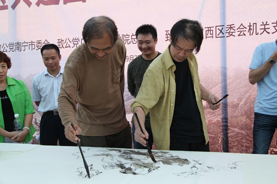 本次主题活动是由致公党南宁市委会联合我院致公党总支部、致公党区委会机关支部、华侨投资区共同举办的。活动期间,致公党中央副主席、广西政协副主席、我院黄格胜院长在中共南宁市委常委、统战部部长容康社的陪同下,进入农户家中对老归侨进行慰问,同时捐赠了一批路灯与书籍。我院致公党党员梁耀、伍小东、钟涛等艺术家还在现场进行了笔会,合作创作了一幅书画作品赠送给华侨投资区。我院归侨侨属代表沈明春、陈思维以及马来西亚留学生陈永馨在现场演唱,为主题活动献上了优美动听的歌声。此外,我院部分致公党党员还与华侨投资区、南宁市委会开展了气排球友谊赛,以球会友,以歌传情,共叙友谊。