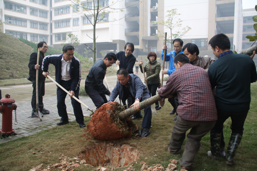 今年3月12日是我国第36个植树节。当天下午,学院各级人大代表、政协委员以及各民主党派、无党派、侨联、留学归国人员等统一战线各界人士代表二十余人在统战部的组织下,来到相思湖校区开展“同心”植树活动。学院领导邓军、赵焕春、陈应鑫、李沛新也一同参加了义务植树。