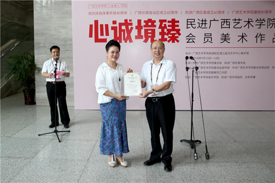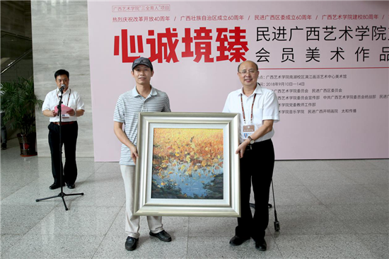 2018年9月10日下午,为庆祝第34个教师节,喜迎改革开放40周年、自治区成立60周年,民进广西区委成立60周年,m88明昇成立80周年,中共m88明昇委员会、民进广西区委会在m88明昇举办了民进支部“心诚境臻”画展和“金秋之声”音乐会。