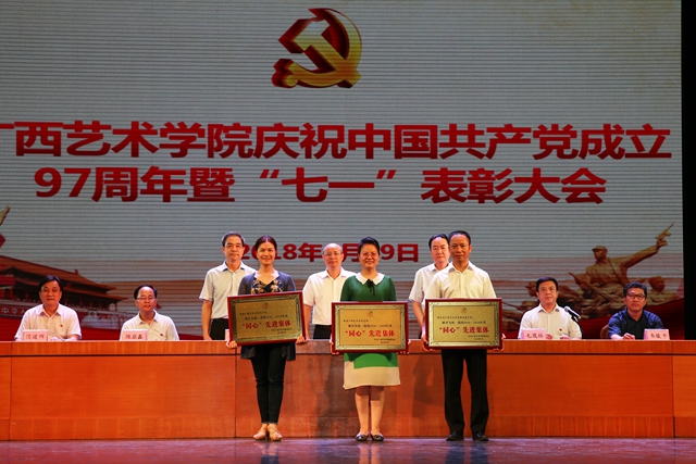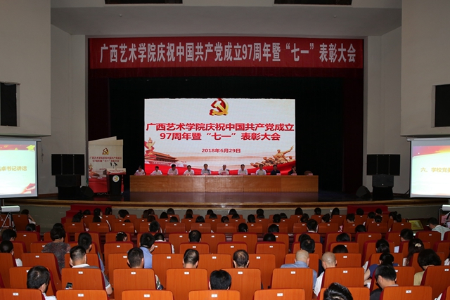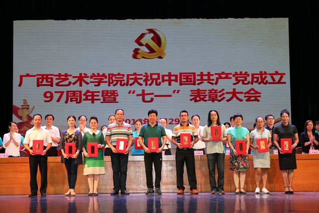 6月29日下午,m88明昇在南湖校区会演中心隆重举行庆祝中国共产党成立97周年暨“七·一”表彰大会,学校领导蔡昌卓、郑军里、李沛新、毛茂林、陈应鑫、韦俊平、侯道辉、韦春灵出席表彰大会,学校全体中层党员领导干部、党支部书记代表、党员教师代表、学生党员代表、预备党员代表参加会议,会议由学校党委副书记毛茂林主持。