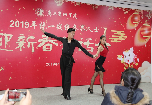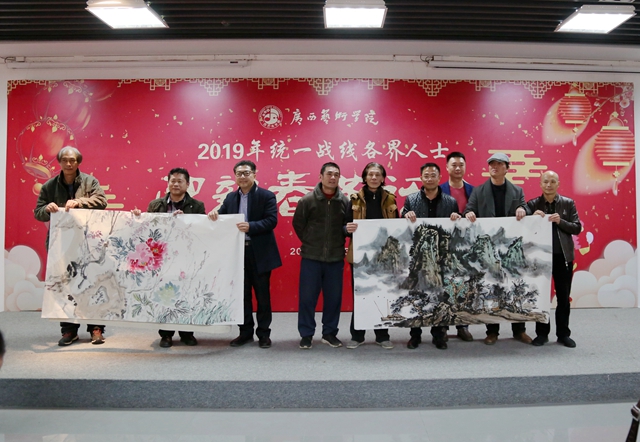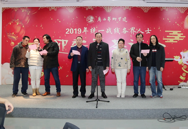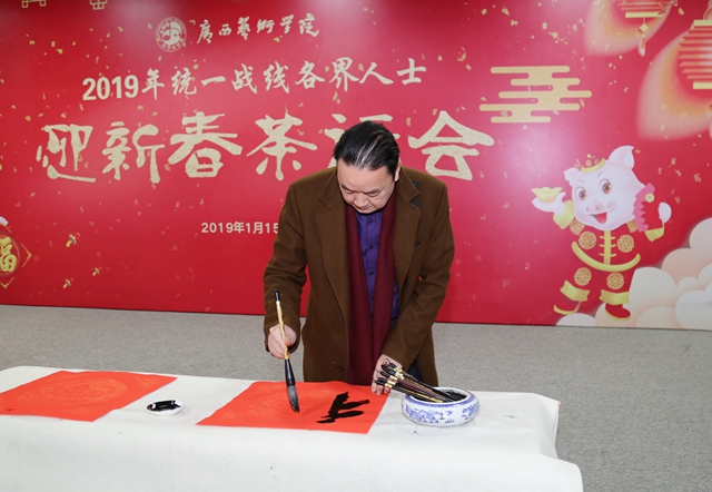 茶话会上,蔡昌卓书记向与会人员通报了学校2018年在学科建设方面、人才队伍建设、人才培养、国际交流、科研创作、社会服务等各个方面取得的主要成绩,充分肯定了在学校80周年校庆工作中,学校统一战线人士发挥专业优势参与和支持庆祝活动,以及在自治区成立60周年的工作中学校党外教师、统一战线成员等画家名师成功参与区庆活动。蔡书记代表学校对统一战线人士为学校的付出表示感谢,希望在新的一年,在学校推进博士单位建设和“双一流”建设的攻坚之年,凝心聚力,在校党委的领导下,进一步提高参政议政能力,充分发挥专业优势,在广西文艺界发出更多广艺的声音。希望学校统一战线人士立足岗位,积极为学校的改革发展献计献策,在助力学校事业发展和“双一流”建设,推动广艺在办好人民满意的艺术教育、繁荣社会主义文艺事业的征程中发挥不可替代的作用。