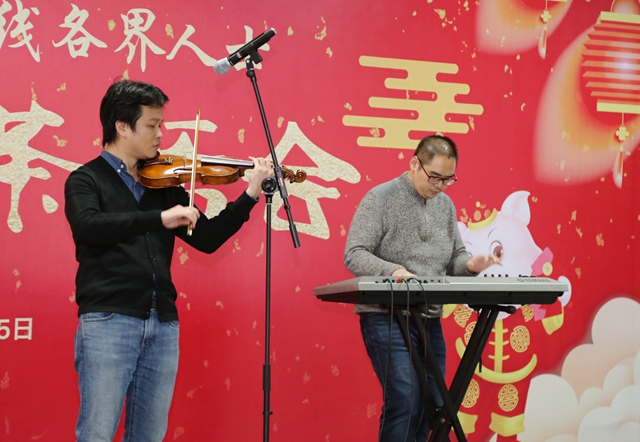 民建、留学人员黄鹏老师小提琴独奏《花儿为什么这样红》,民建周鑫老师电钢伴奏